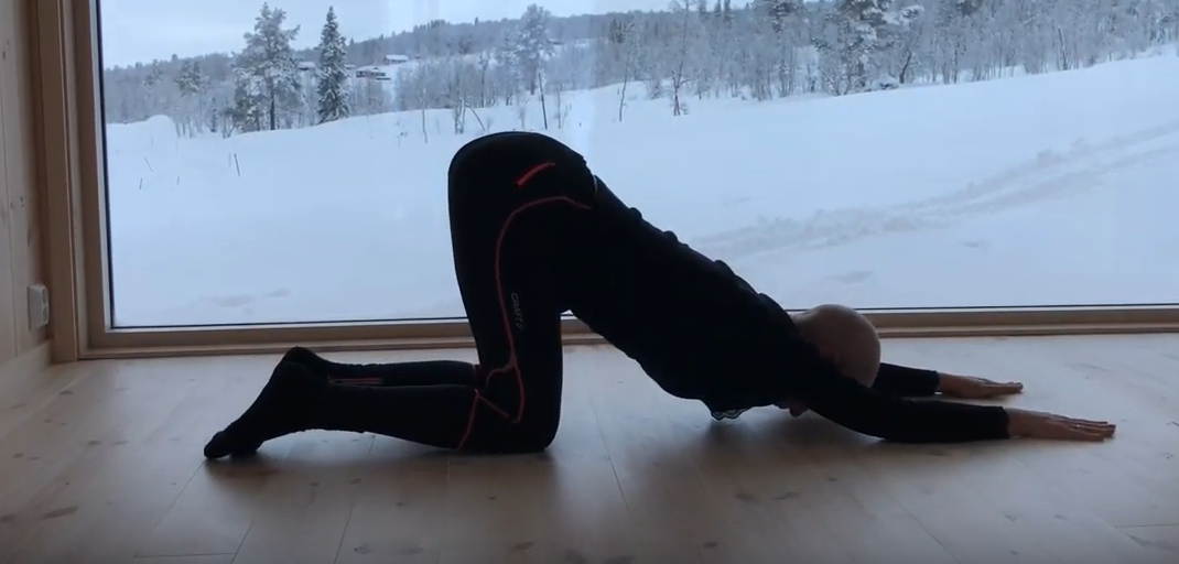 Her kan du gjerne kombinere med kjente øvelser slik som push-ups og sit-ups o.l. På dager hvor du ikke orker noe særlig, legg deg på ryggen, trekk bena og knærne opp mot magen og bare vogge forsiktig fram og tilbake.